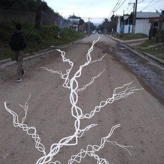 A través de la invitación a participar del proyecto “Empalmes. Ruta de Artes Visuales”, de la Dirección de Artes Visuales, la artista Juliana Estrada y yo, Guadalupe Carrizo, diseñamos una propuesta artística específica para la localidad de Tafí Viejo, ciudad aledaña a la capital tucumana. En el marco de este proyecto nos propusimos repensar la memoria colectiva de la comunidad del barrio respecto a un cauce de agua que atravesó en algún tiempo geográfica y afectivamente el territorio y que luego desapareció.